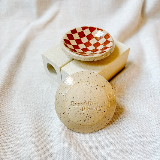 Sold outMini Trinket Dish - Brown Checkers