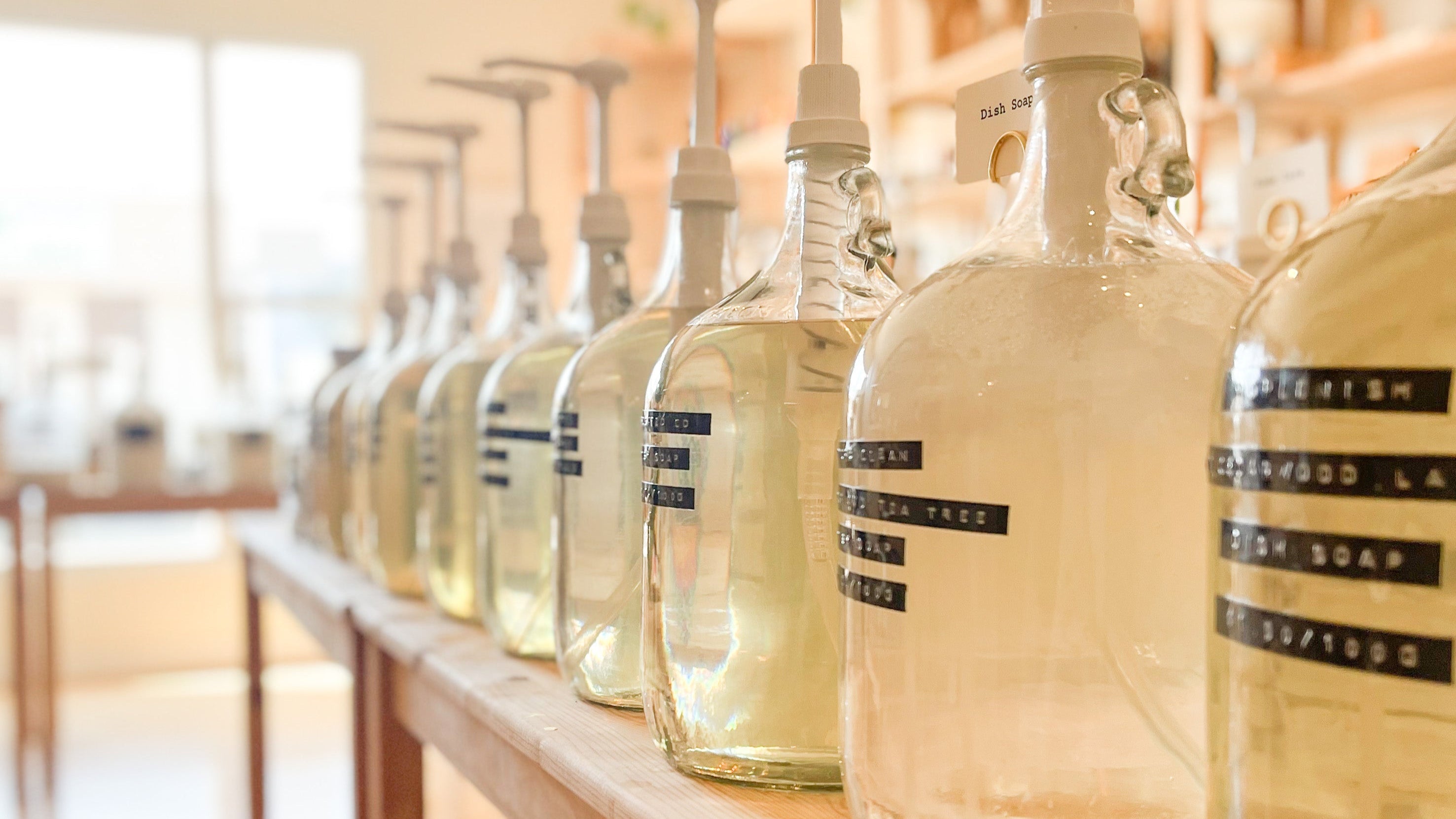 When you visit us bring your empty containers with you to be refilled. Don't have a container or forgot yours? No problem! We have a free jar library available as well as various different bottles, jars, and dispensers available for purchase.